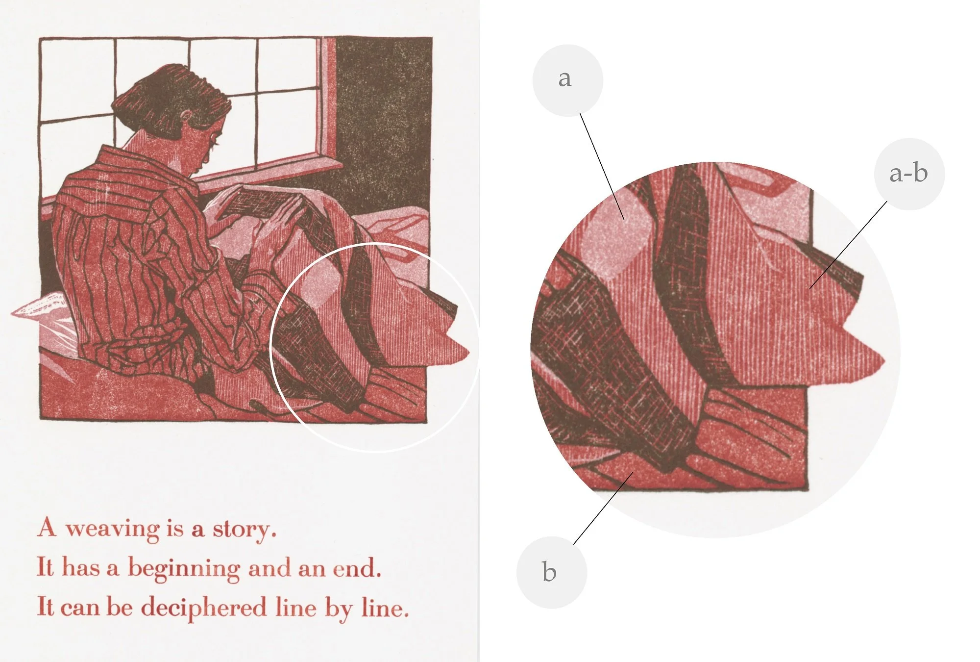 This linocut reader was based on this excellent photo (I'm a sucker for a cross-legged pose from three-quarter view). You can see that I changed everything: hair colour, facial structure, body type, surroundings, clothing, and shoes. Recreating the lighting on her chest and shoulders (never mind the feet!) was a challenge. Consider this advanced mode linocut portraiture.
